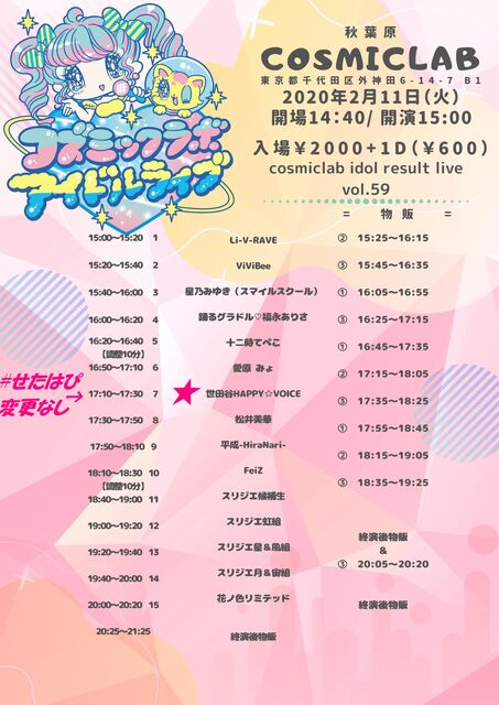 ※開場・開演時間は、変更になる場合がございます。予め、ご了承ください。