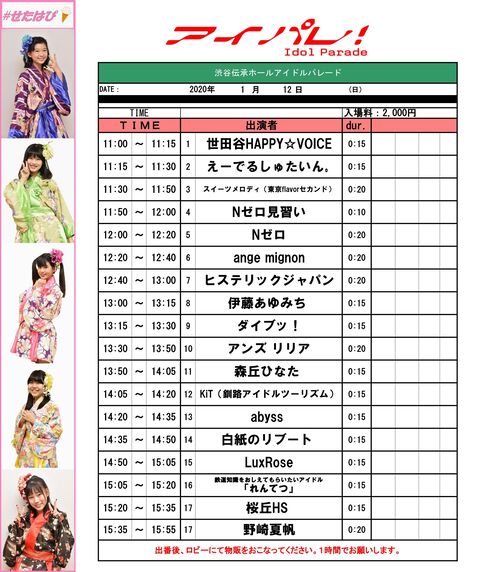 1月12日(日)渋谷伝承ホールアイドルパレード